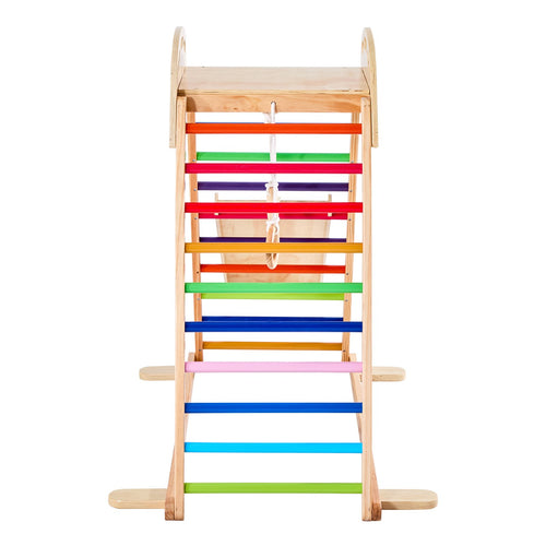 Pikler Triangle Set, 5 In 1 Toddler Climbing Toys Indoor Playground, Ramp, And Arch, Montessori Climbing Set With Triangle, Medium Size Wooden Climbing Gym For Toddlers 1-3 Years, Wood Color -